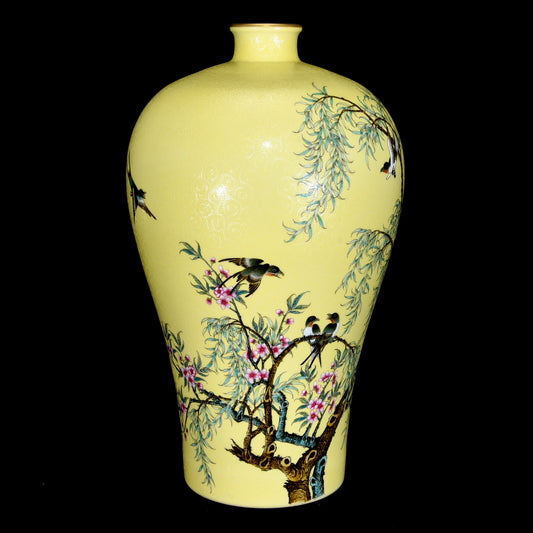 A1832 Chinese Qing Dynasty Gilt Edge Famille Rose Enamel Flowers Bird Design Porcelain Vase