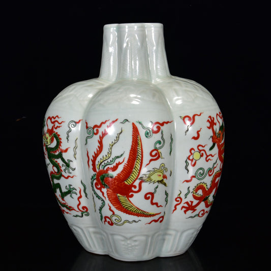 A1835 Chinese Wucai Dragon Phoenix Design Porcelain Vase