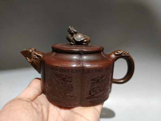 A1858 A Set Chinese Yixing Zisha Dragon Turtle Teapot w Cups