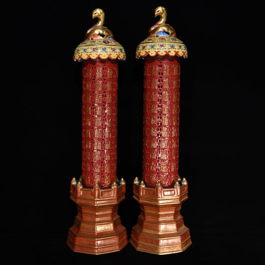 A1860 A Pair Chinese Qing Dynasty Gilt Gold Famille Rose Porcelain Incense Tube