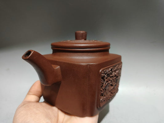 A1907 Antique Chinese Gilt Gold Yixing Zisha Mountain River Scene Design Teapot