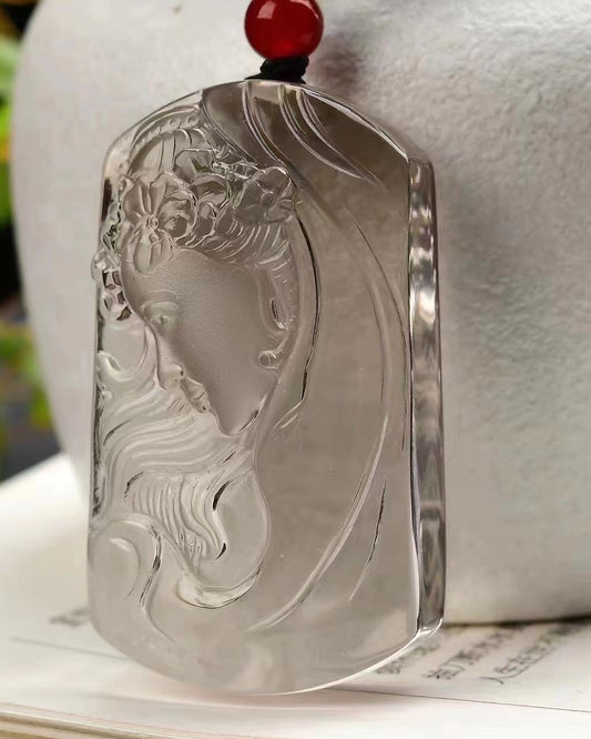 A1932 Beautiful Crystal Low Relief Beautiful Woman Pendant w Hand Woven Neckalce