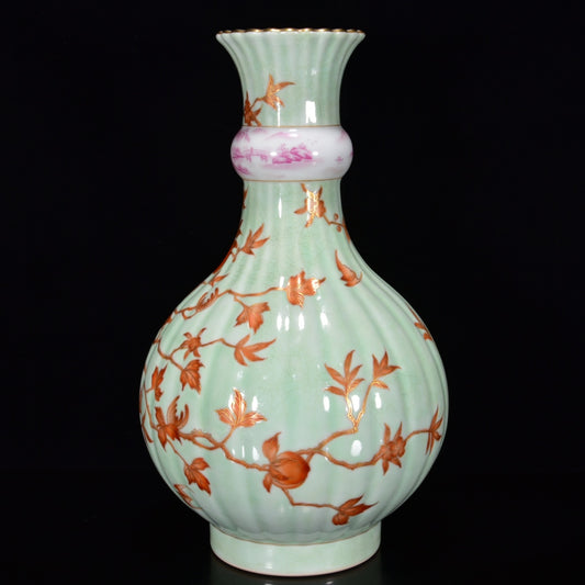 A1941 Chinese Gilt Edge Green Glaze Iron Red Glaze Pomegranate Design Porcelain Vase