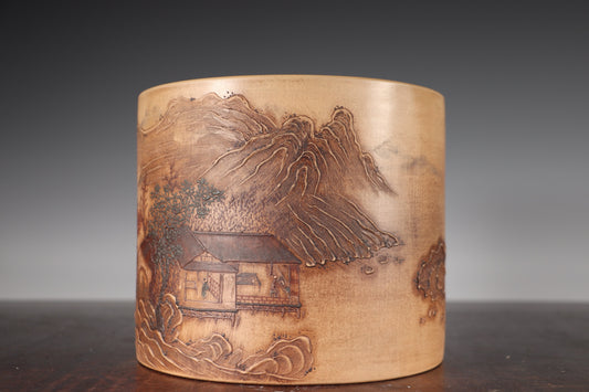 A1766 Antique Chinese Yixing Zisha Low Relief Live In Remote Mountains Design Brush Pot