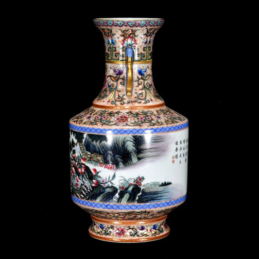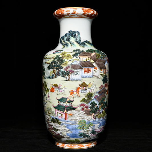 A1784 Chinese Qing Dynasty Gilt Edge Famille Rose Figures Design Porcelain Vase