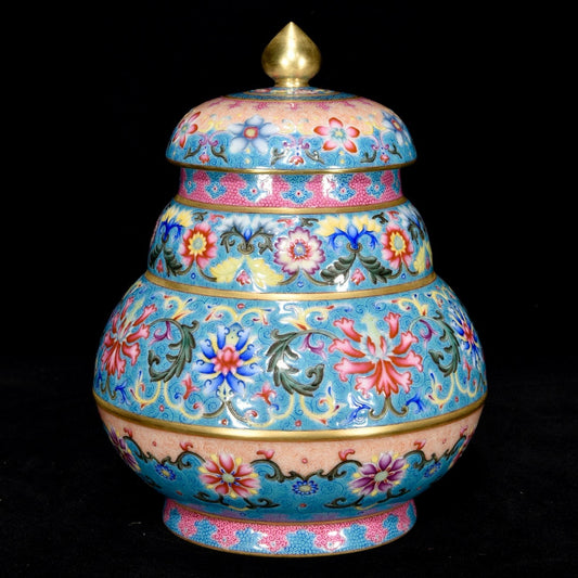 A1790 Chinese Qing Dynasty Gilt Edge Famille Rose Flowers Design Porcelain Pot