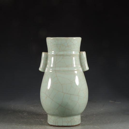 A1796 Chinese Guan Kiln Double Ear Porcelain Vase