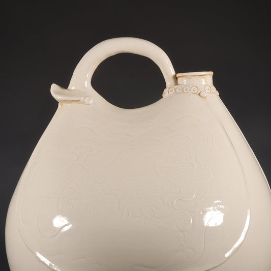A1809 Chinese Ding Kiln White Glaze Porcelain Handle Pot