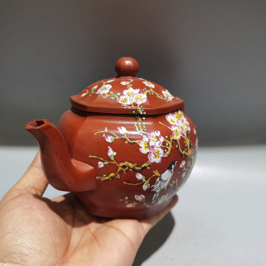 A1812 Chinese Famille Rose Yixing Zisha Clay Plum Flower & Magpie Teapot Design