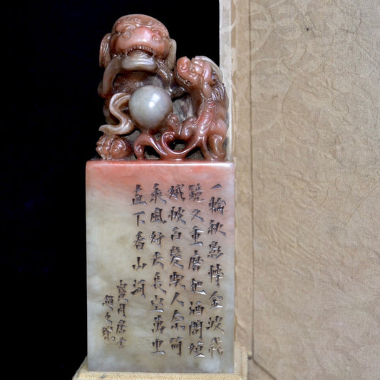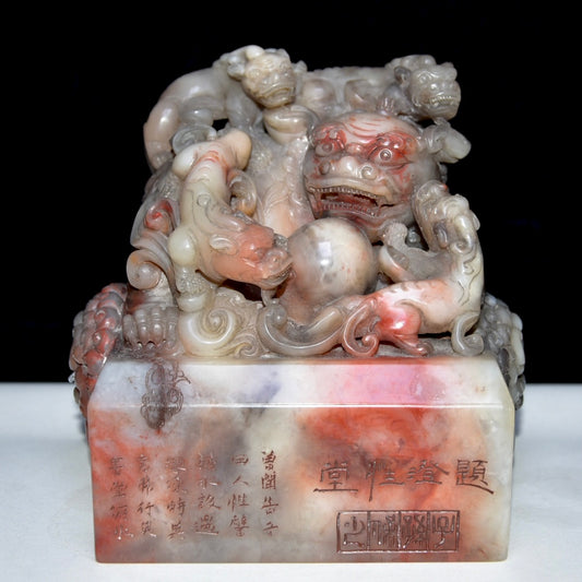 A1415 Vintage Chinese Shoushan Stone Carved Fortune Lion Seal