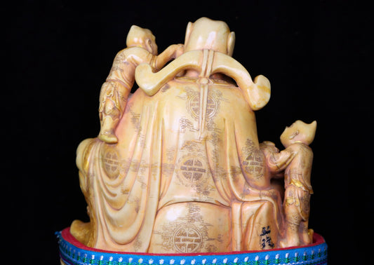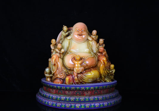 A1429 Vintage Chinese Shoushan Stone Carved Laughing Buddha & Kids Statue