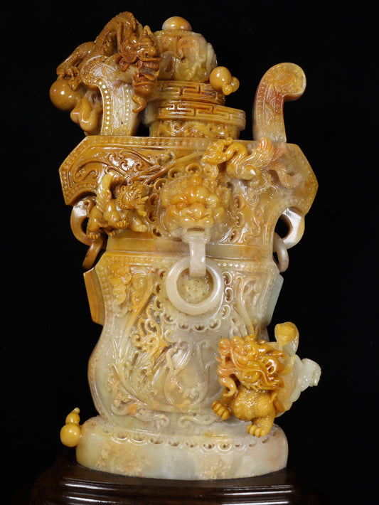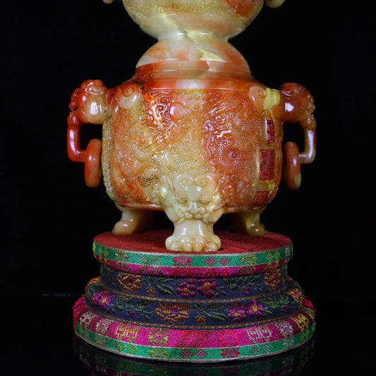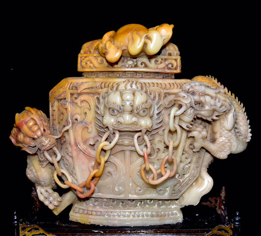 A1461 Vintage Chinese Shoushan Stone Divine Beast Double Layer Incense Burner