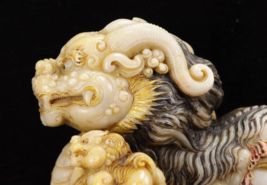 A1474 Vintage Chinese Shoushan Stone Carved Fortune Lion Statue