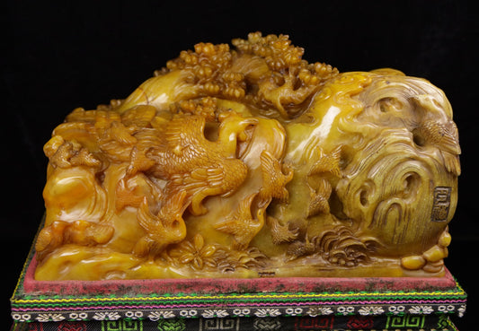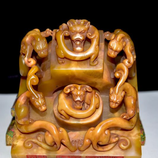 A1651 Superb Chinese Tianhuang Stone High Relief Chi Dragon Seal Statue
