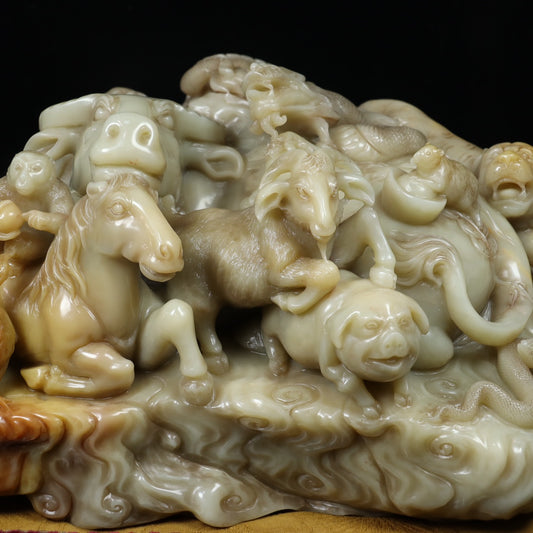 A1501 Superb Vintage Chinese Shoushan Stone Carved 12 Zodiacs Statue