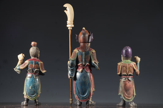 A1548 A Set Chinese Shoushan Stone Colored Drawing General Guangong Statues