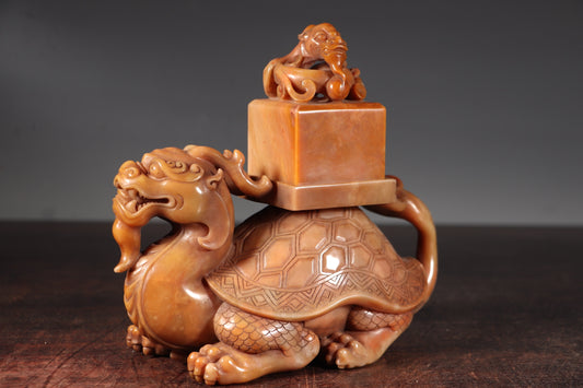 A1621 High Quality Chinese Tianhuang Stone Carved Dragon Turtle Seal