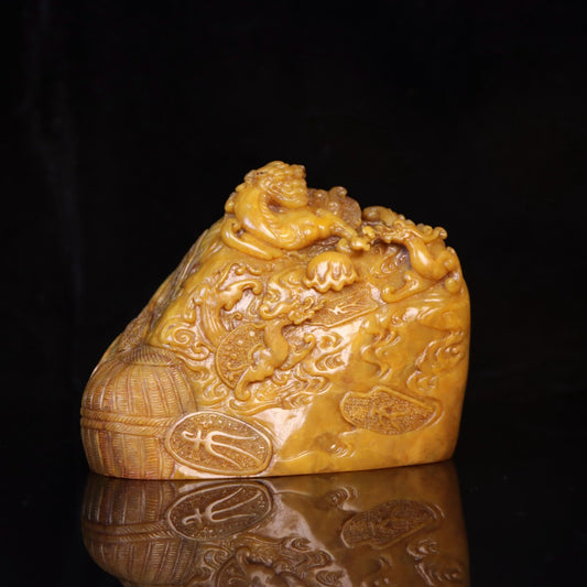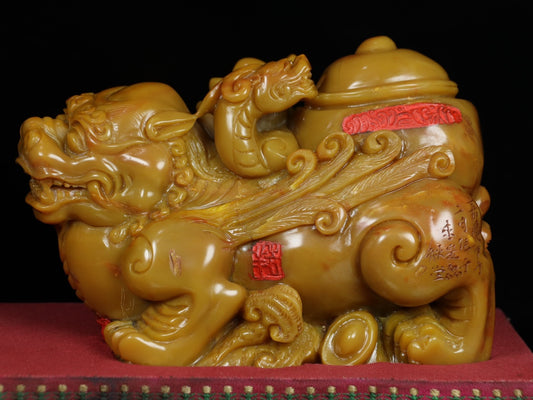 A1376 Chinese Shoushan Tianhuang Stone Carved Fortune Beast Seal Statue