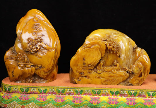 A1754 A Pair Vintage Chinese Tianhuang Stone Divine Beast Statues
