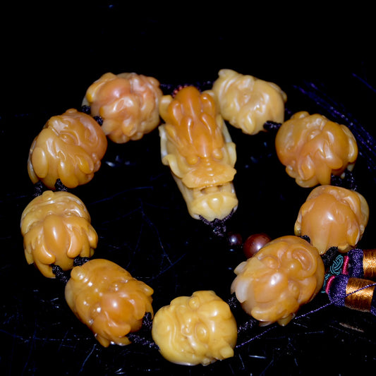 A1703 Superb Old Chinese Tianhuang Stone Carved Fortune Dragon Beads Bracelet