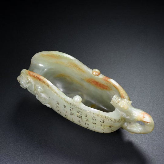 A0317 Old Chinese Hetian Jade Low Relief Chi Dragon Wine Cup