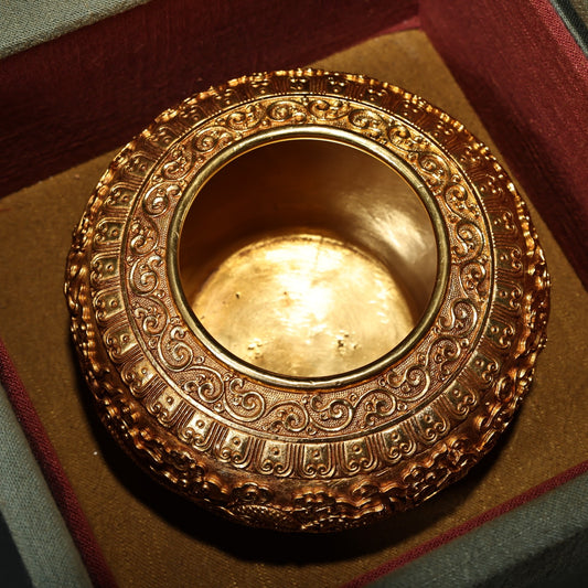A0331 Vintage Chinese Gilt Gold Bronze Low Relief Dragon Brush Washer/Pot w Box