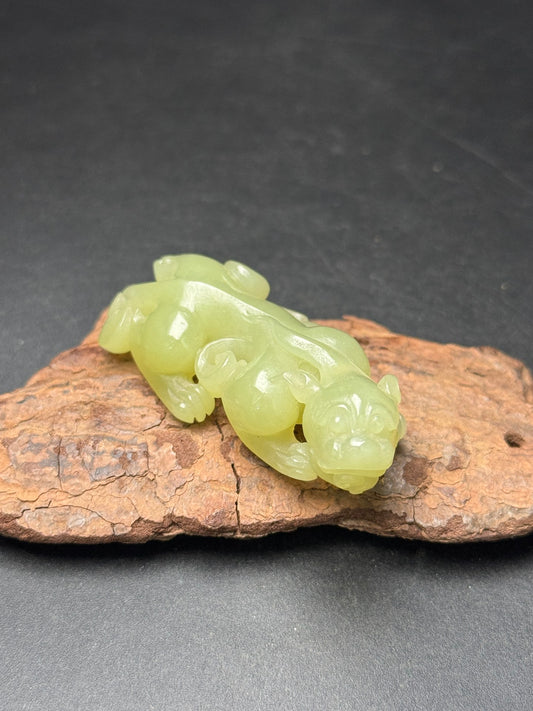 A0383 Chinese Natural Yellow Hetian Jade Carved Chi Dragon Statue