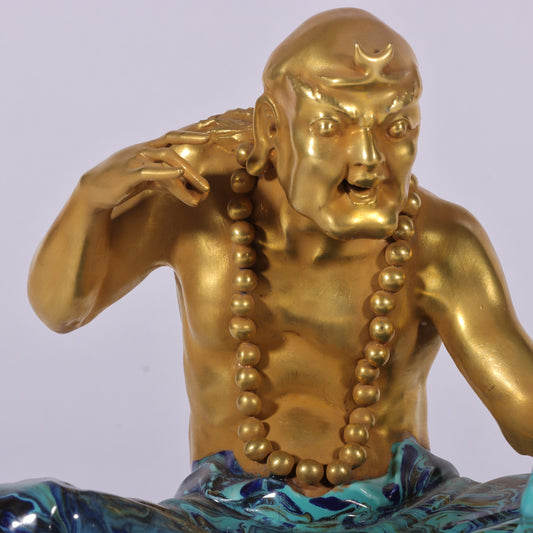 A0408 Chinese Gilt Gold Jun Kiln Dragon & Arhat Statue
