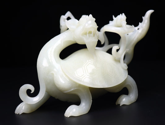 A0411 High Quality Chinese White Hetian Jade Carved Dragon Turtle Statue
