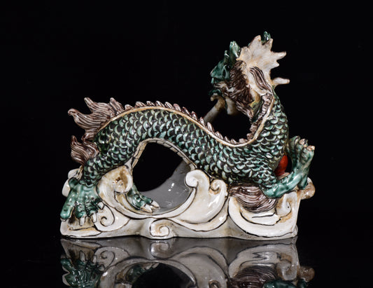 A0033 Old Chinese Famille Rose Fortune Dragon Porcelain Statue
