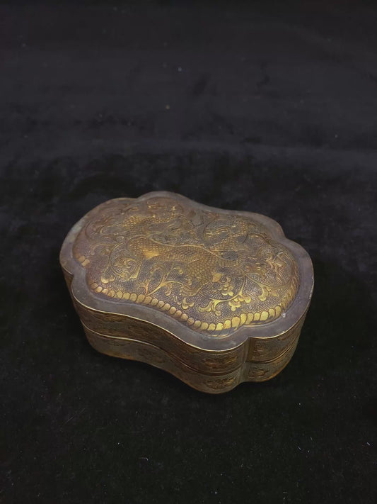 A0020 Vintage Chinese Gilt Gold Chi Dragon & Flower Design Jewellery Box