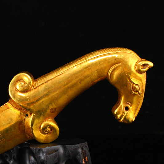 Chinese Gilt Gold Bronze Horse Head Dagger Statue