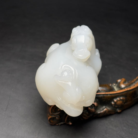 A0826 Superb Chinese White Hetian Jade Carved Fortune Horse Statue