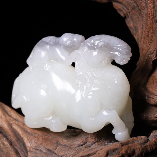 A0584 Superb Chinese White Hetian Jade Carved Horse & Monkey Statue/Pendant