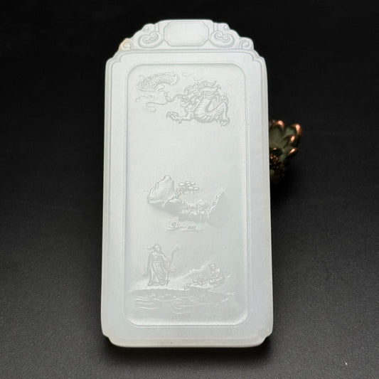 A1202 Vintage Chinese Hetian Jade Carved Fortune Horse & Figure Statue