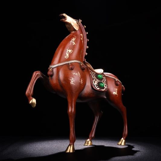 A1380 Chinese Gilt Gold Copper Inlay Green Jade Fortune Horse Statue