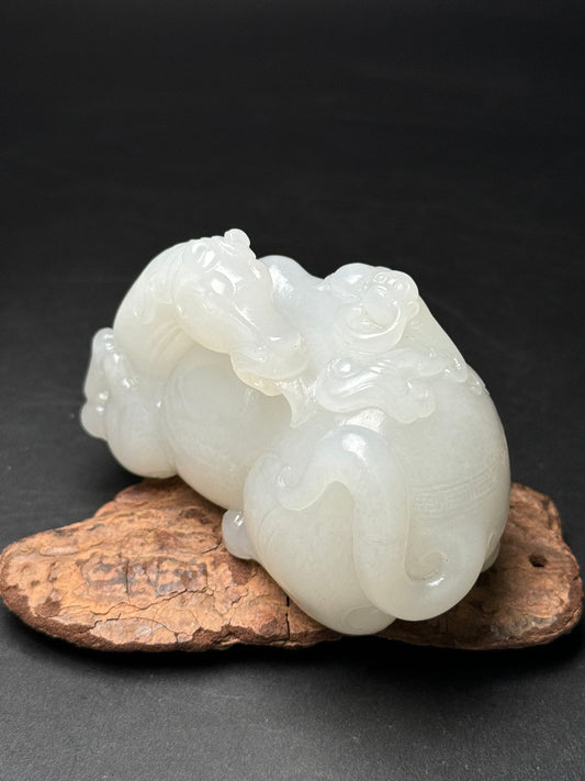 A0579 Superb Chinese White Hetian Jade Carved Fortune Horse Statue