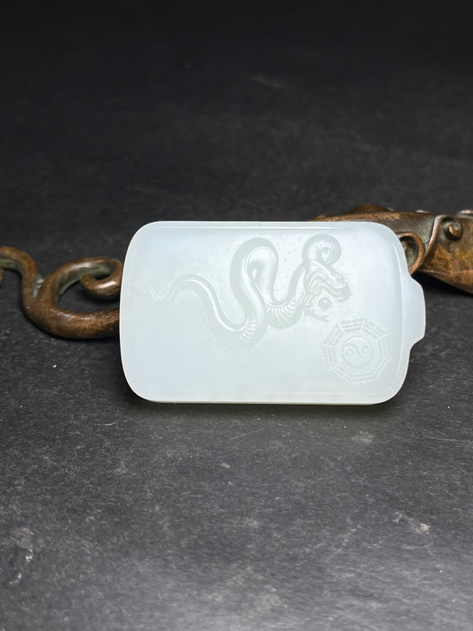 A1093 Chinese Natural Hetian Jade Low Relief Snake Design Pendant