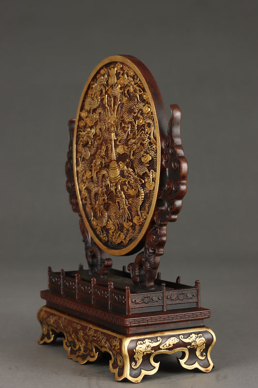 A1271 Vintage Chinese Gilt Gold Copper Nine Dragon Design Screen