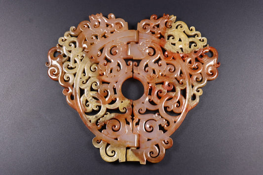 A0947 Openwork Vintage Chinese Hetian Jade Carved Dragon Phoenix Jade Bi