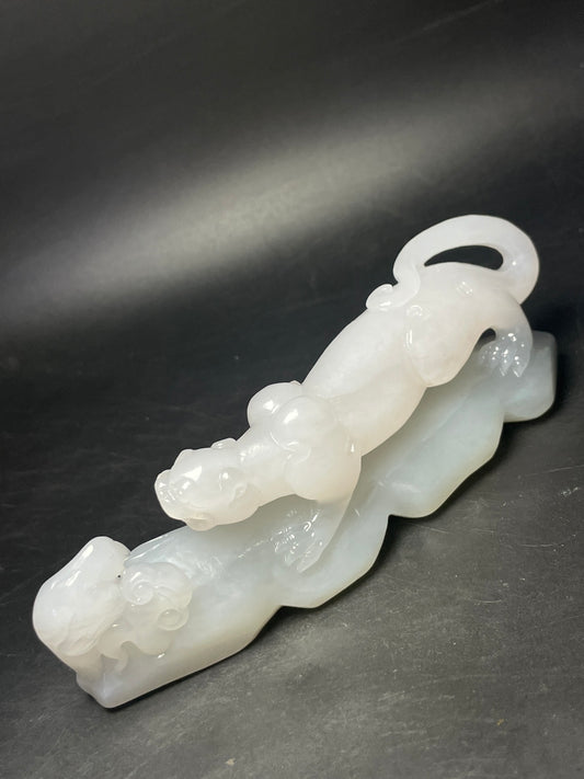A0980 Superb Chinese White Hetian Jade Carved Chi Dragon Statue