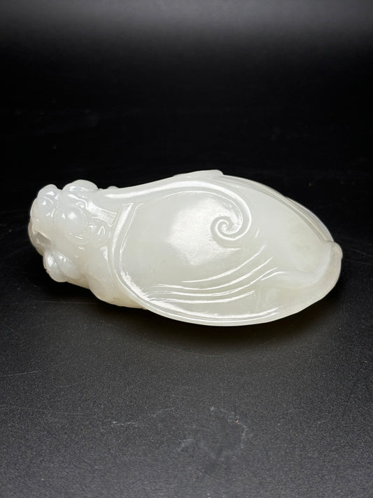 A1049 Superb Vintage Chinese Hetian Jade Carved Fortune Dragon Cup
