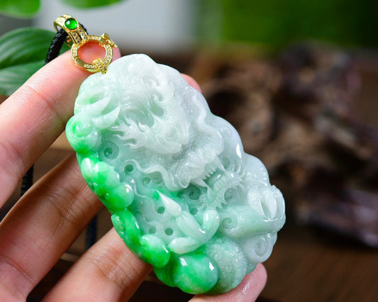 A1069 Exquisite Jadeite Carved Fortune Dragon Pendant