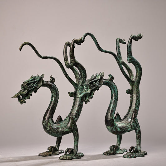 A1175 A Pair Vintage Chinese Bronze Fortune Dragon Statues