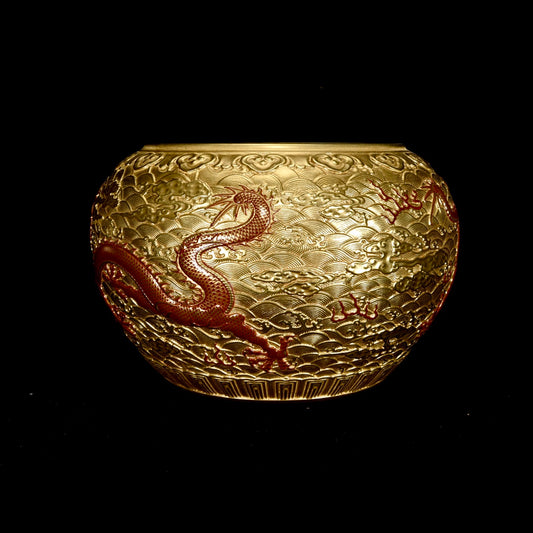 A0490 Chinese Gilt Gold Clouds Dragon Design Porcelain Brush Wsher