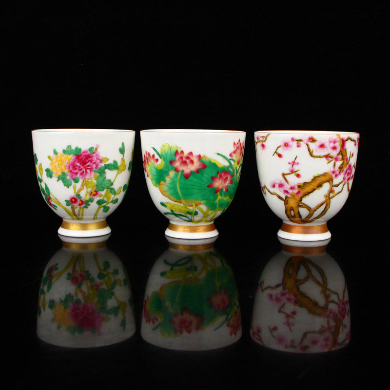 A Set Twelve Chinese Famille Rose Flowers Design Porcelain Cups