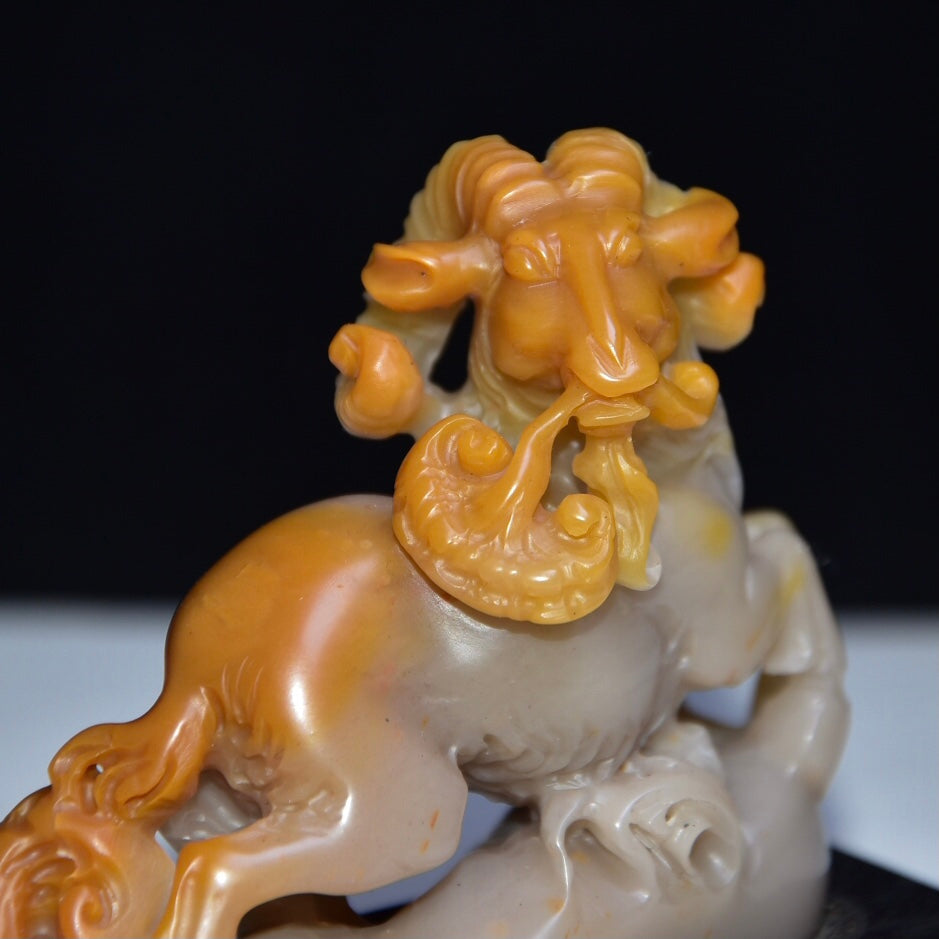 A0002 Old Chinese Shoushan Stone Carved Sheep & Ruyi Statue