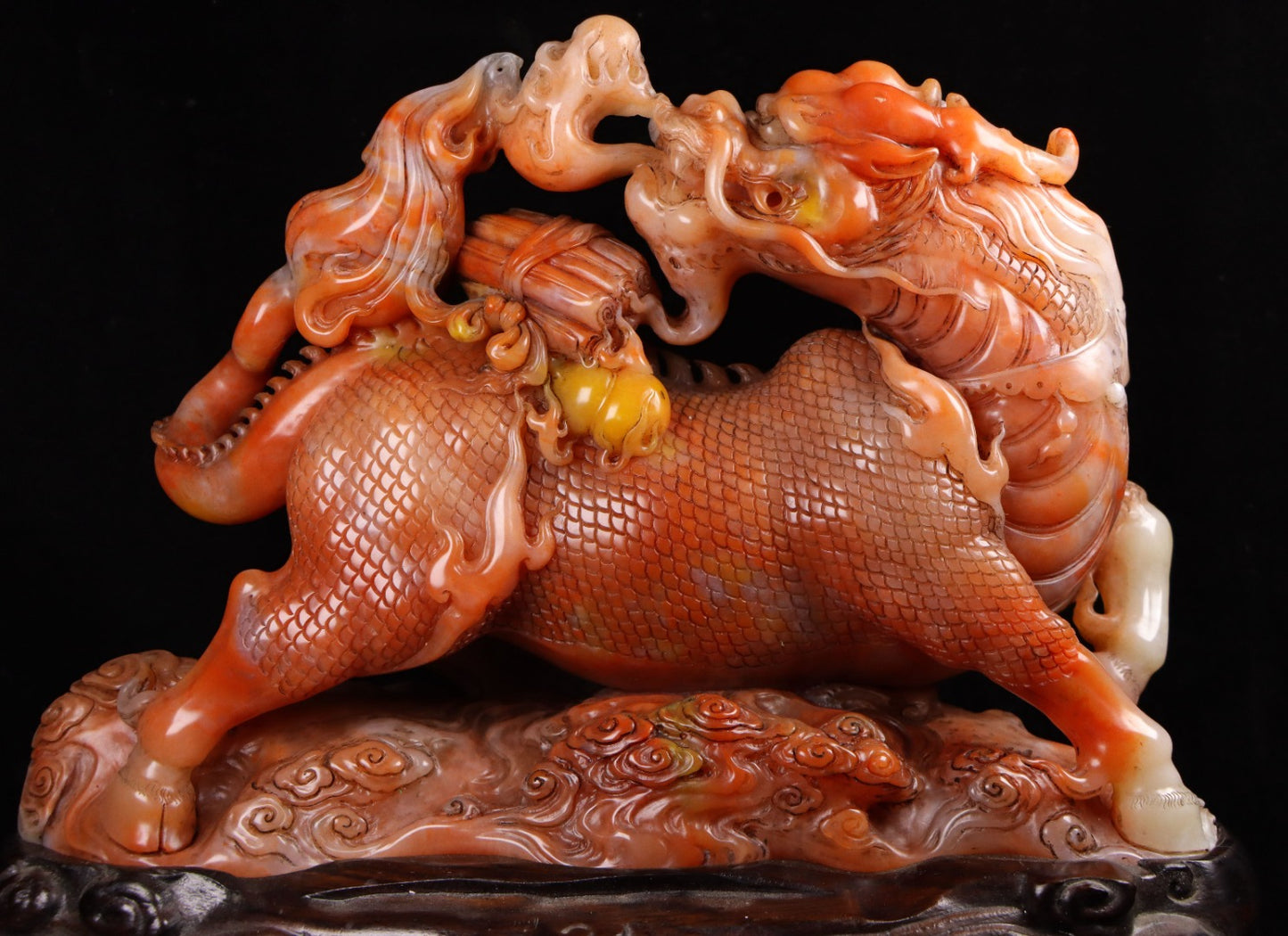 A0007 Superb Chinese Shoushan Stone Carved Fortune Kylin Statue