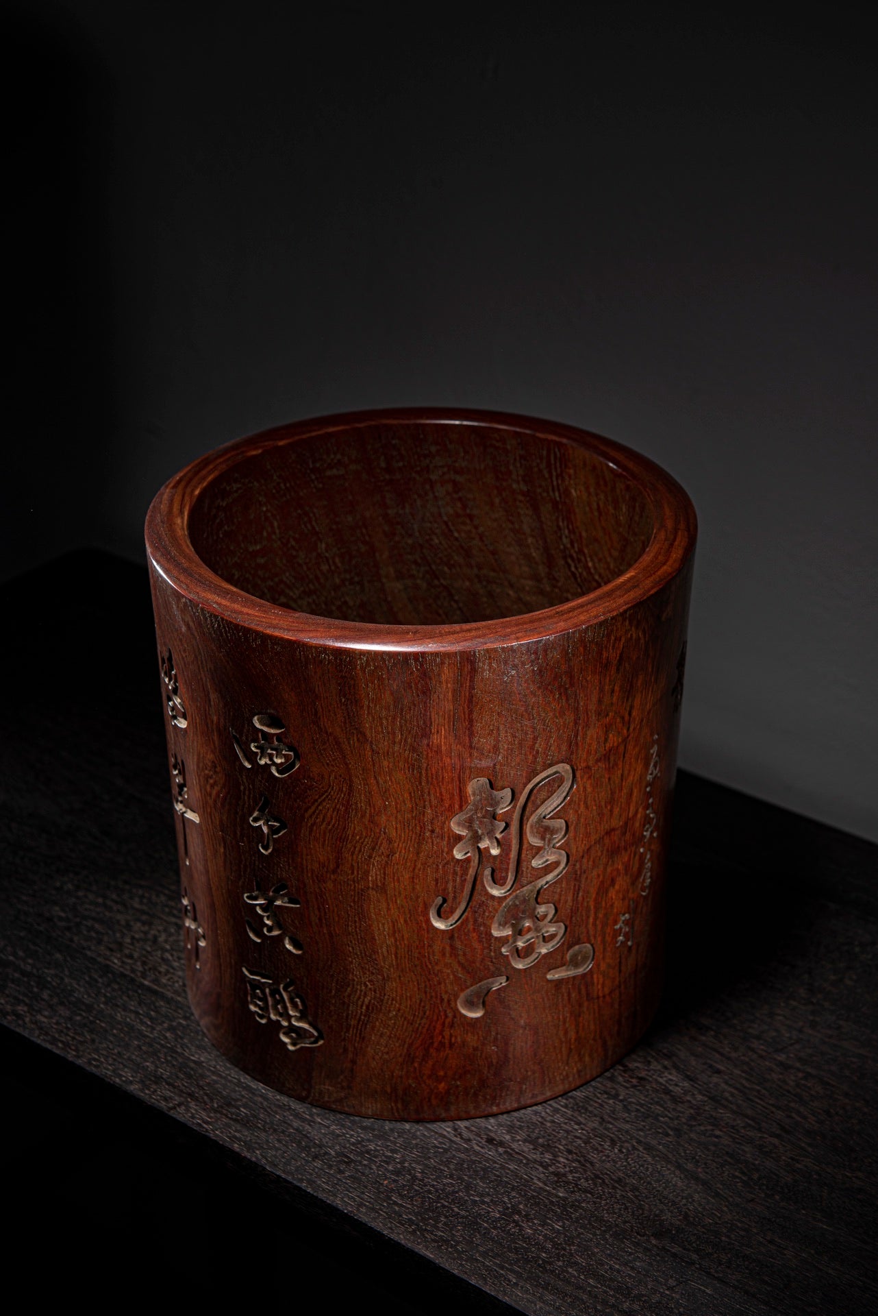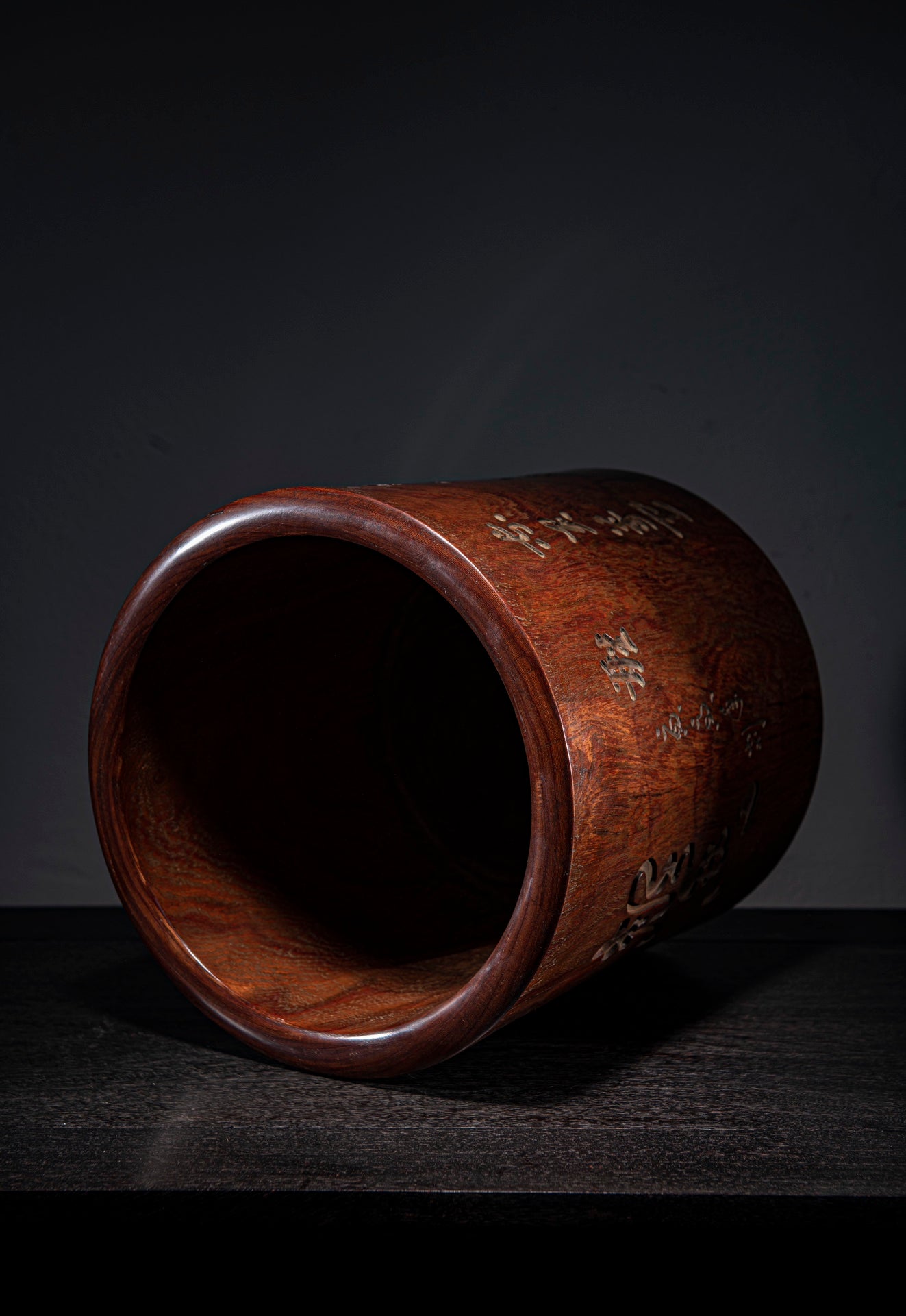 A0021 Old Chinese Red Sandalwood Poetic Prose Brush Pot
