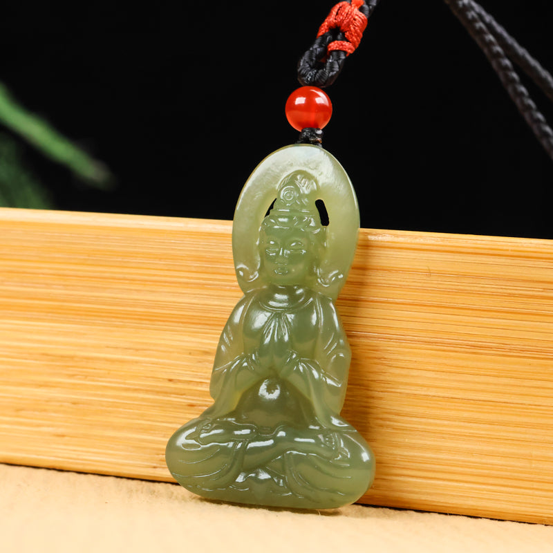 A0116 Chinese Natural Green Hetian Jade Carved Kwan-yin Pendant